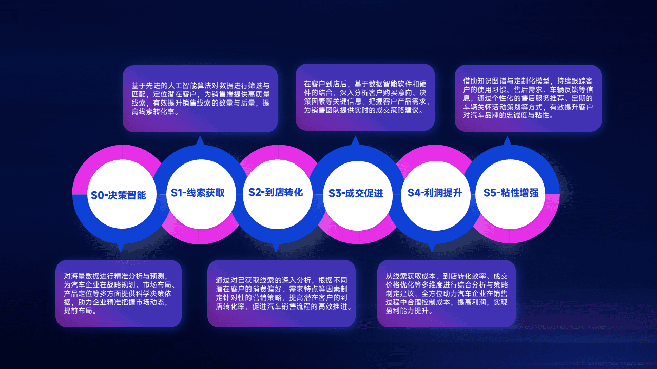 通过拓宽潜在客户来源、、、优化线索分配并提高到店转化率,,,以增强销售效率。。同时,,利用线索数据不断优化分析模型,,,,有效提升转化率,,,扩大营销影响力。。